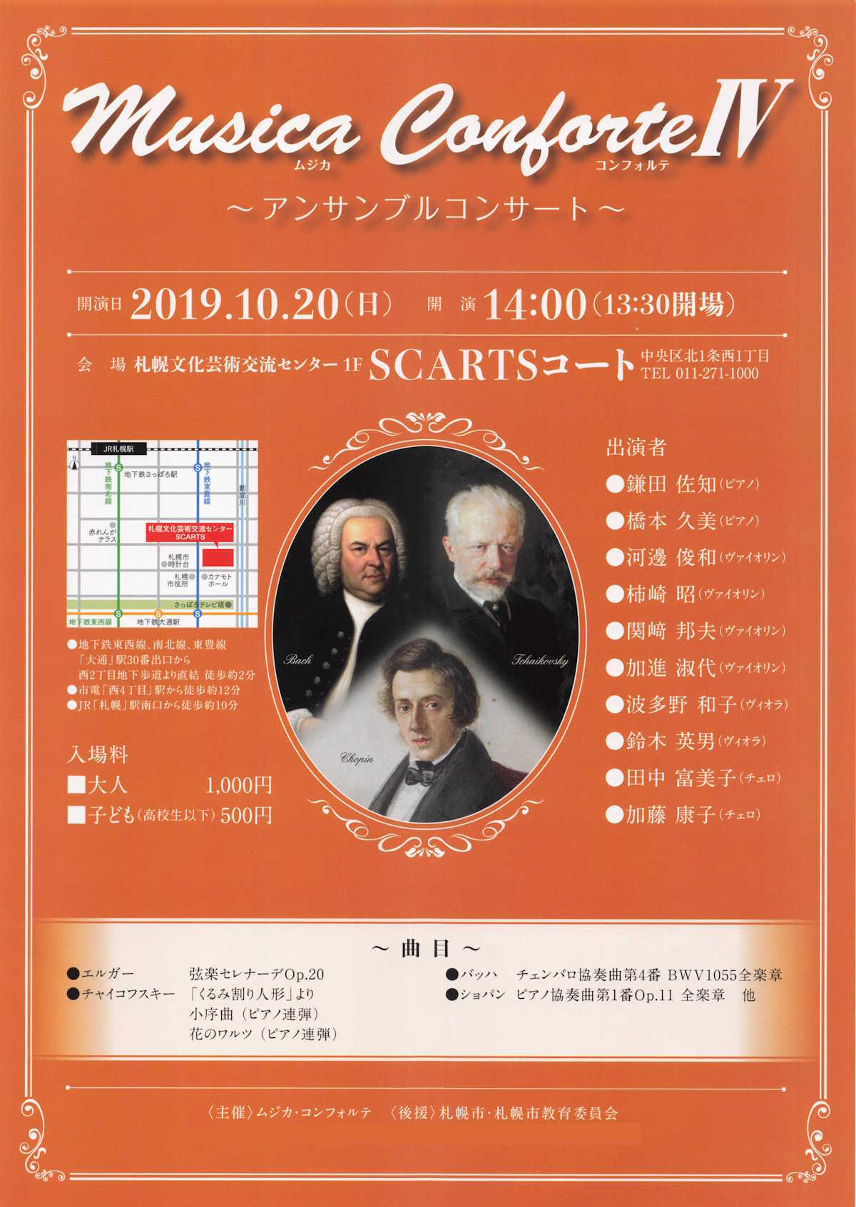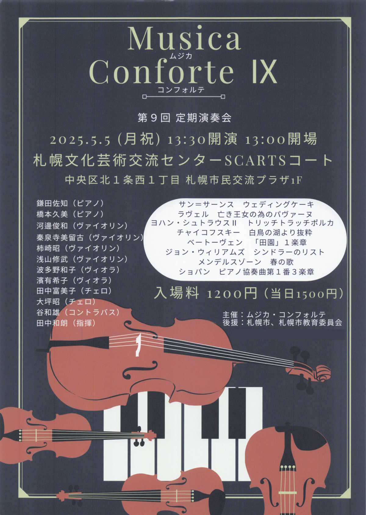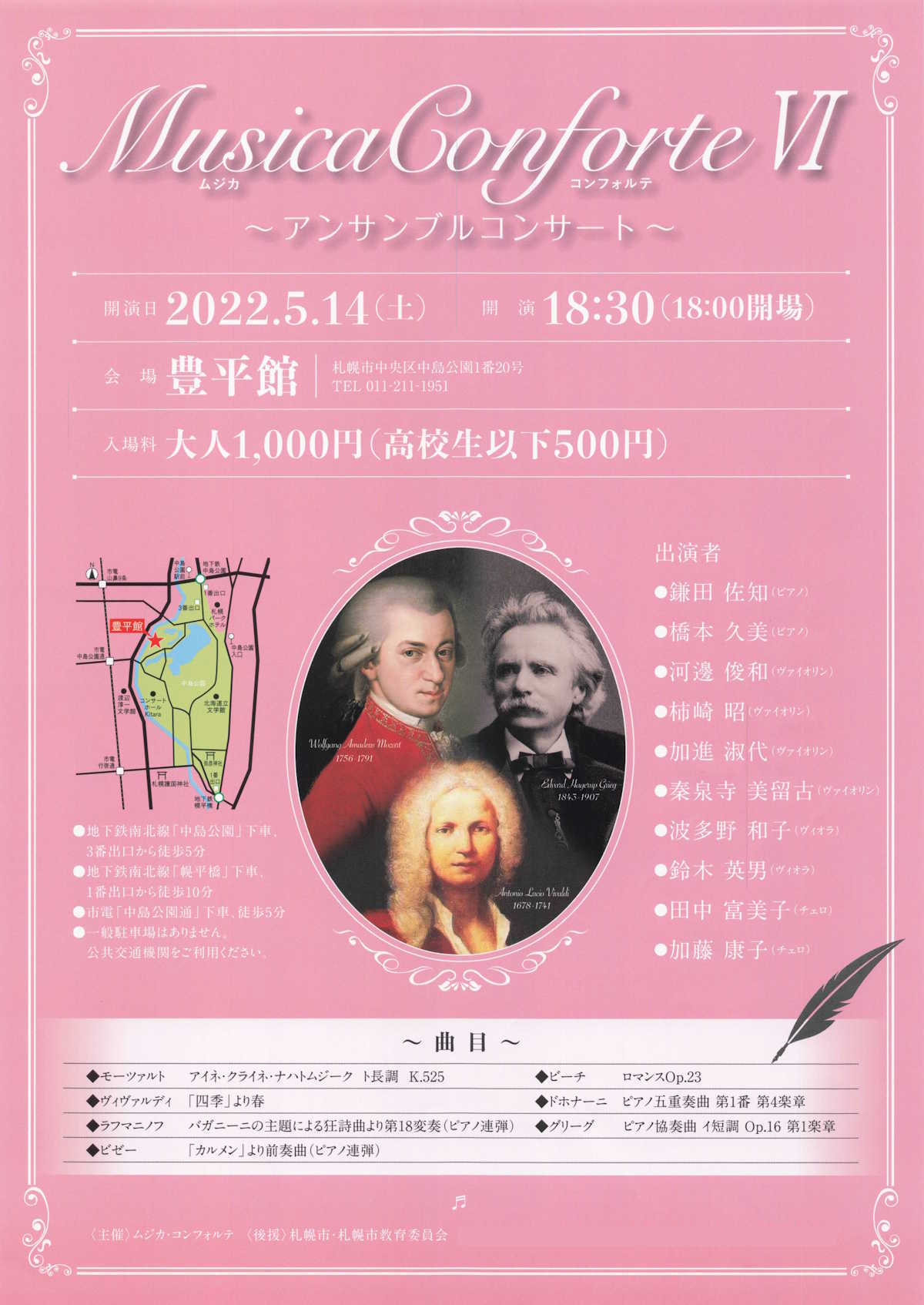 団体名の『Mmusica Conforte 』(ムジカ コンフォルテ)は「安らぎの音楽 心地よい音楽」の独自呼び名の通り聴いてくださる皆様はもちろん、演奏する私たち自身も心地よく、心満たされるひとときを共有することを目指しています。音楽を通じて繋がる喜びが、私たちの演奏の原動力です。